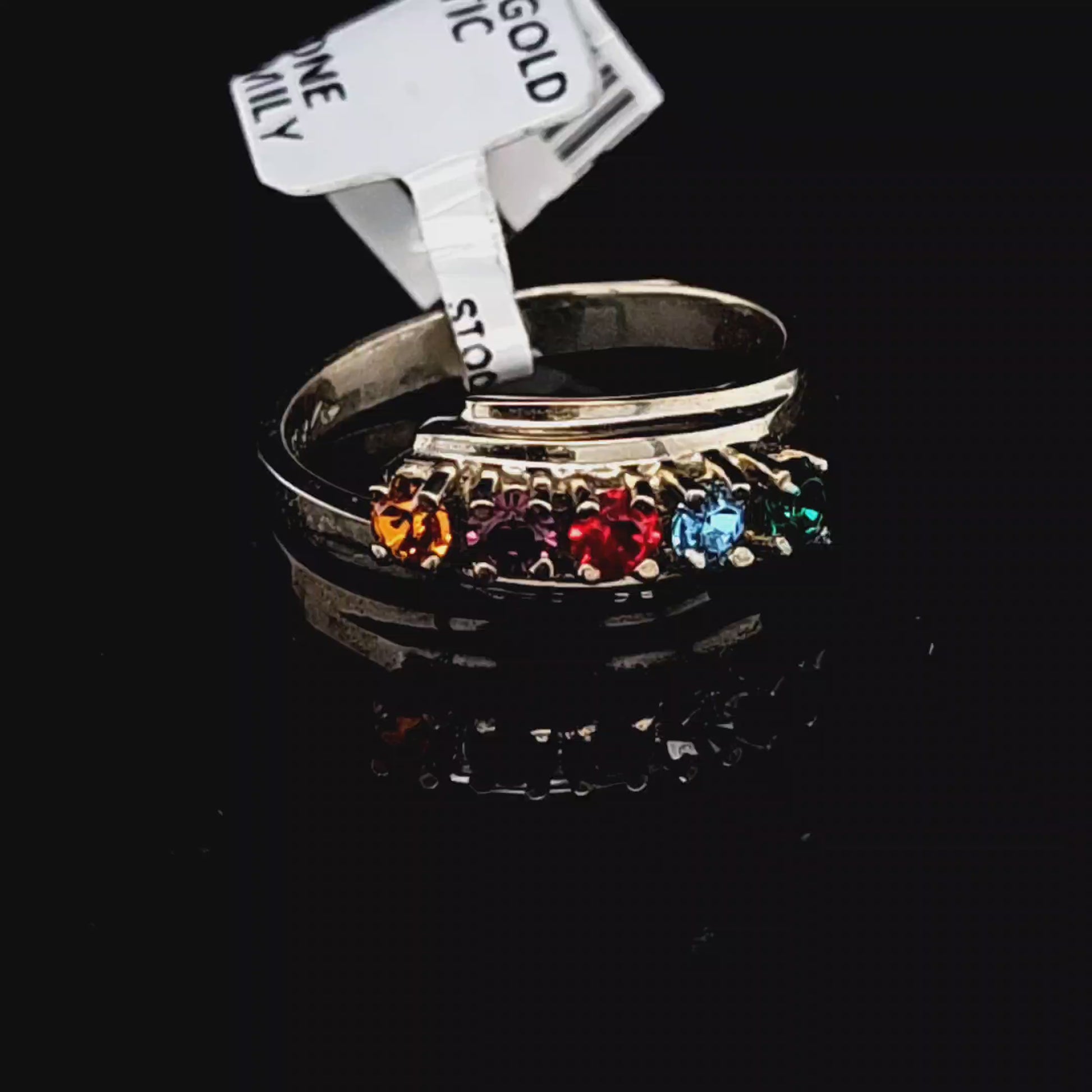 This 5-colour STONE RING embodies elegance and beauty with its stunning MULTICOLOR STONES set in a durable 10K WHITE GOLD band. Perfect for any occasion, this ring is a timeless addition to any jewelry collection.