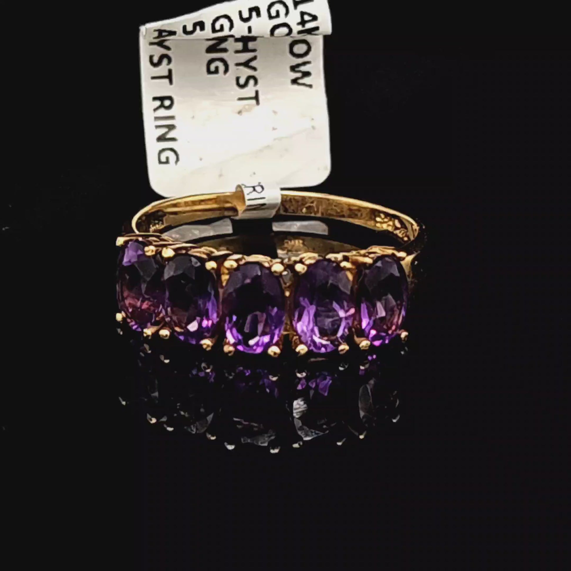 Introducing our stunning 5 Oval Amethyst Ring, crafted with 14K gold and a high-quality, new-trend design. Enjoy the beauty and elegance of five oval amethyst stones at a great value. Upgrade your jewelry collection with this unique and affordable piece.