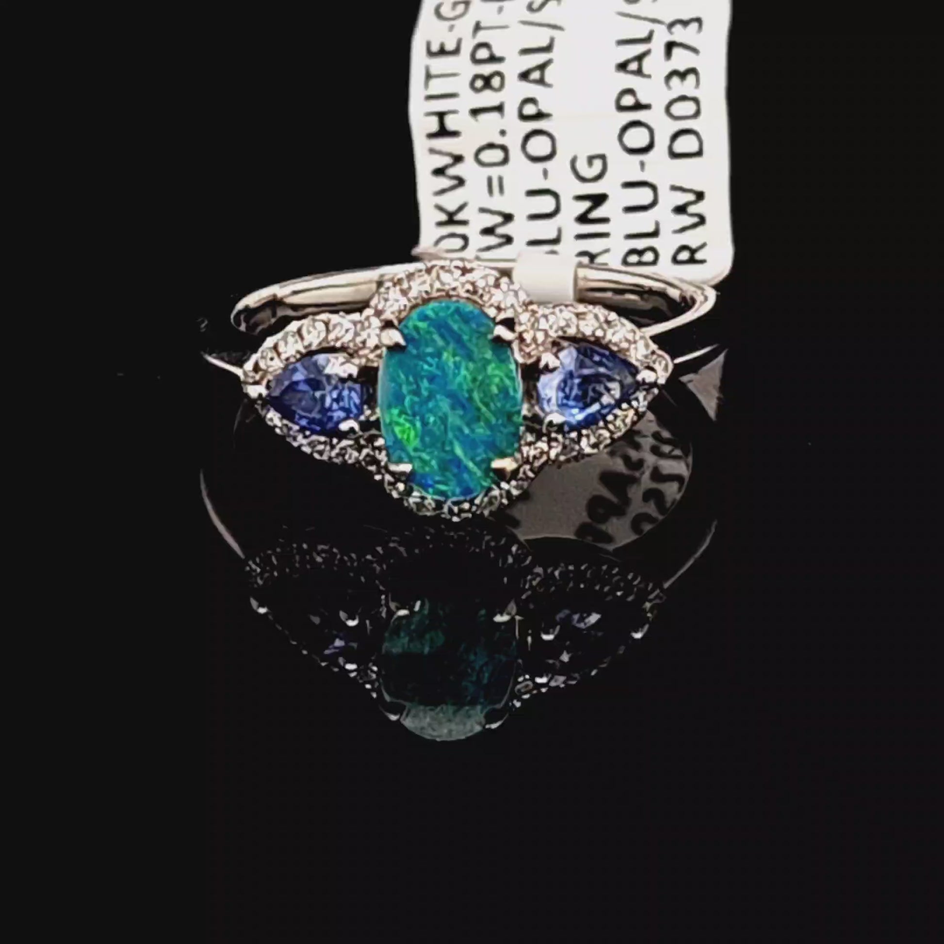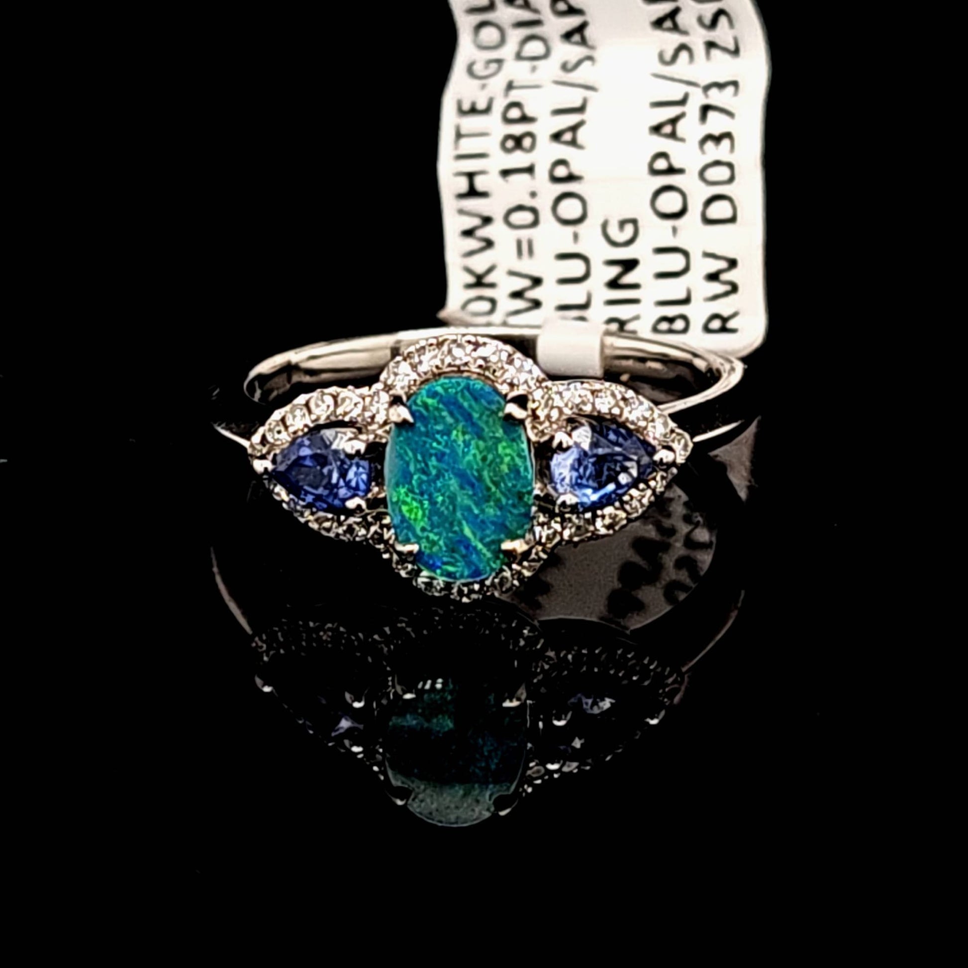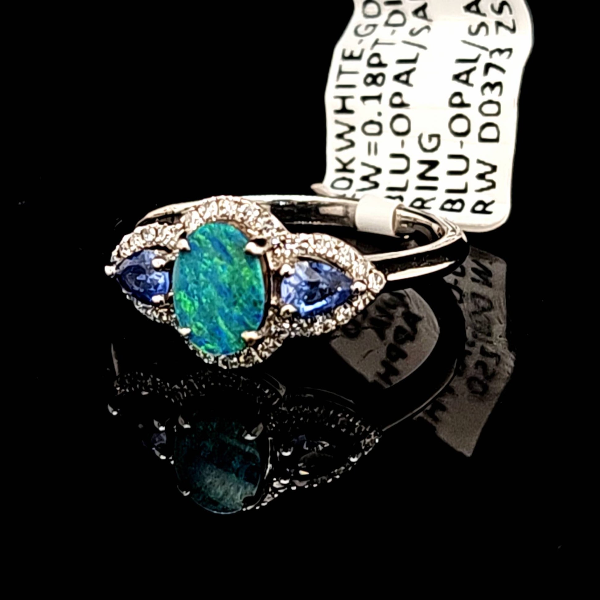 Experience elegance and beauty with our BLUE OPAL ring. Expertly crafted with 10 white gold and a stunning blue opal center, complemented by .18ct natural diamonds. The perfect balance of luxury and affordability. Enhance your style with this timeless piece at a great value.