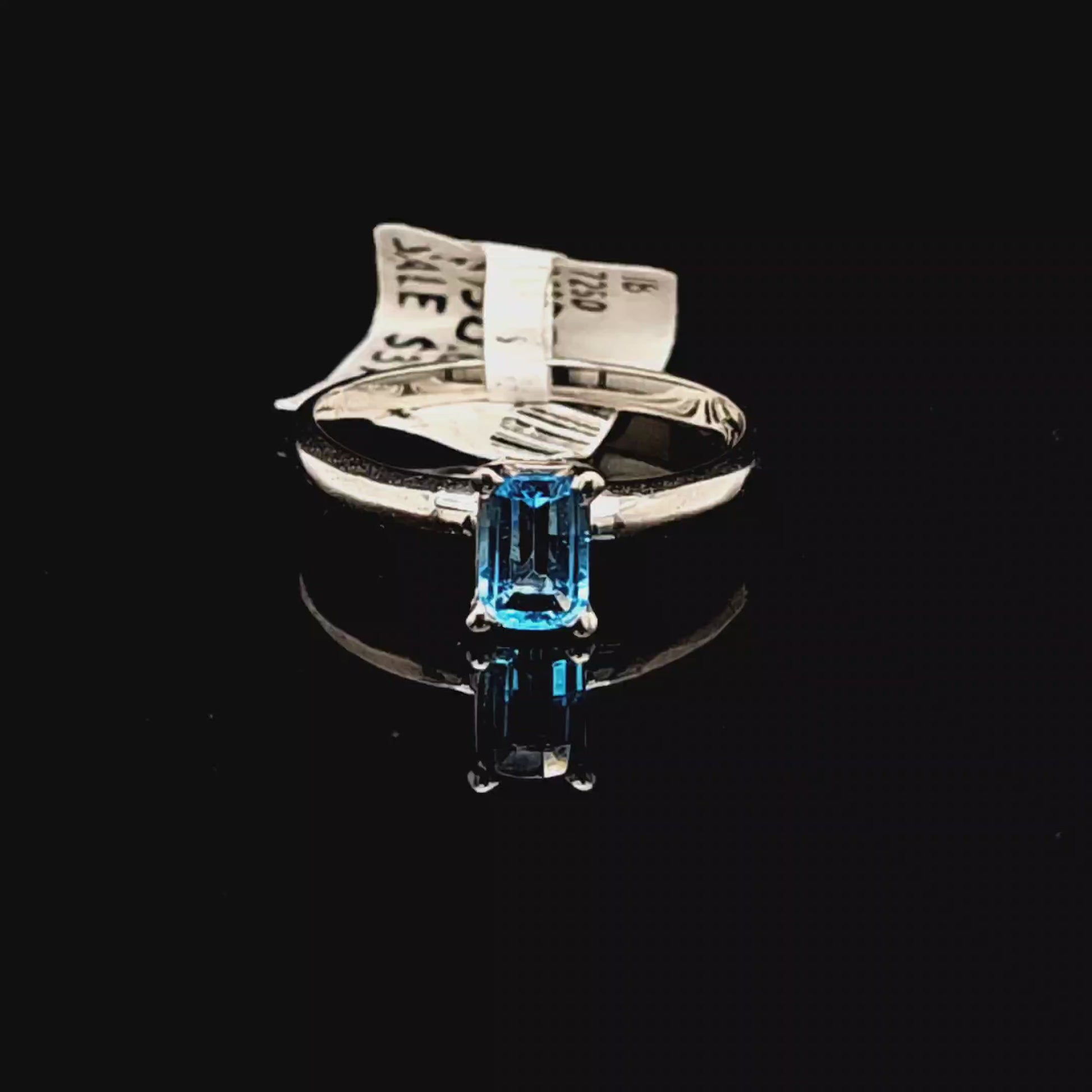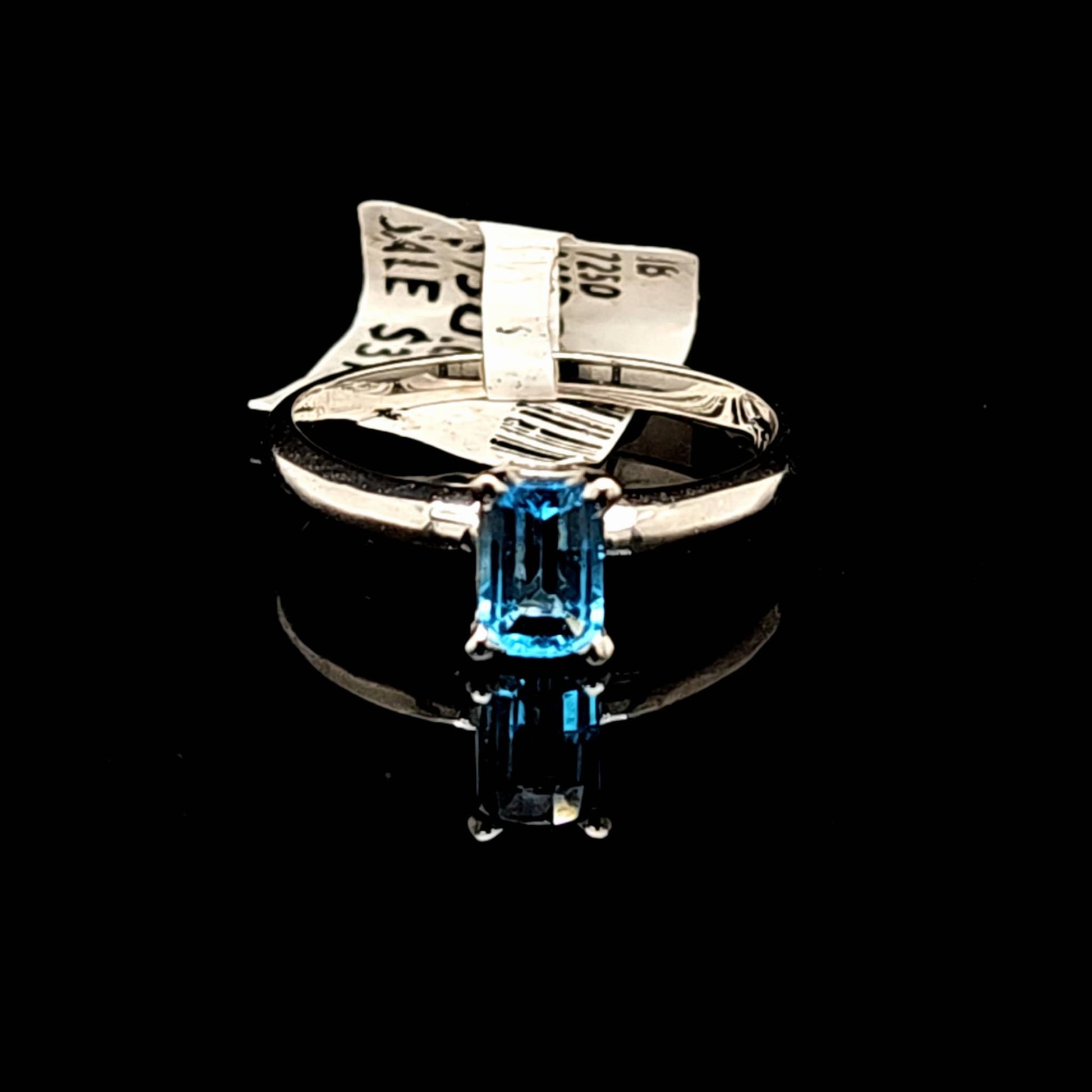 This stunning Blue Topaz Emerald ring features 14K white gold and is carefully handcrafted. Its beautiful design makes for a timeless piece at a very affordable price. Elevate your style with the radiance of this exquisite gemstone.