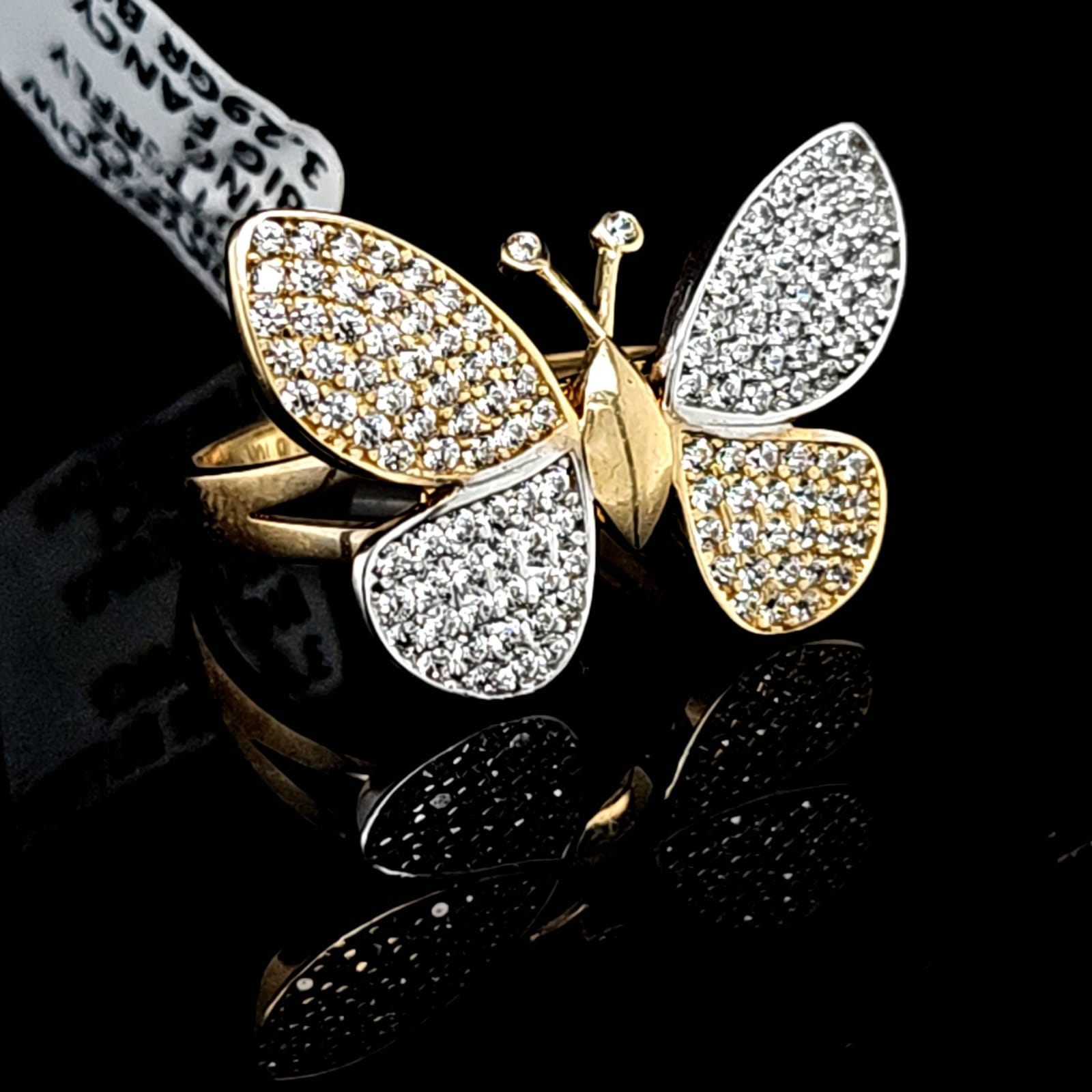 This stunning 10K gold BUTERFLY RING showcases exquisite craftsmanship, making it the perfect accessory for any lady. Featuring a beautiful butterfly design, this ring is sure to elevate any outfit. Embrace its timeless elegance and add a touch of nature to your look.