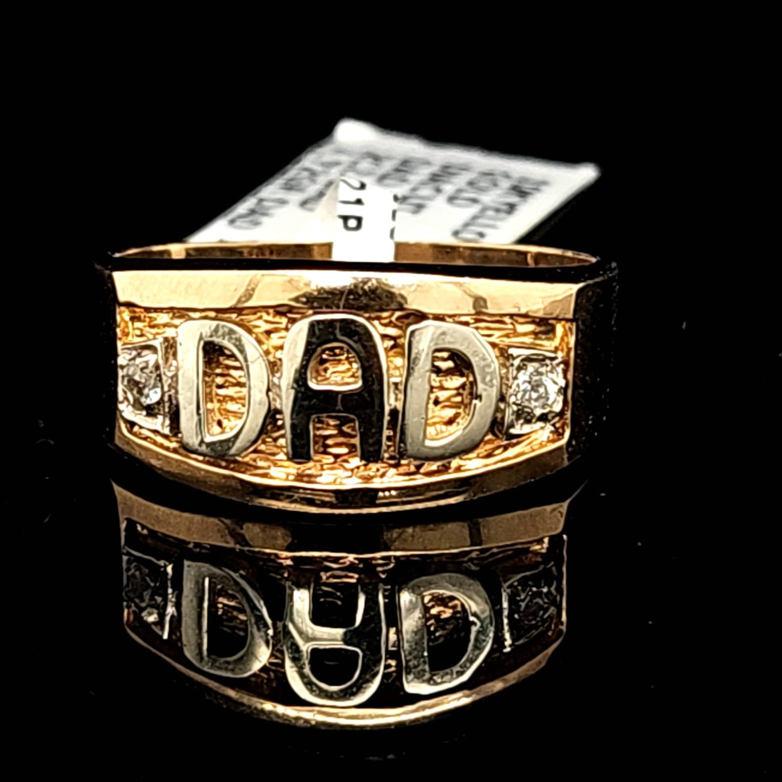 This stunning DAD RING is expertly crafted with 10K SOLID gold and sparkling cubic zirconia, weighing in at 4.72G. Show your appreciation for the special father figure in your life with this beautiful and meaningful piece. Perfect for any occasion.