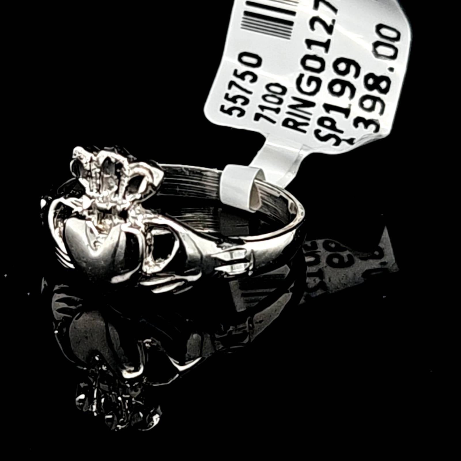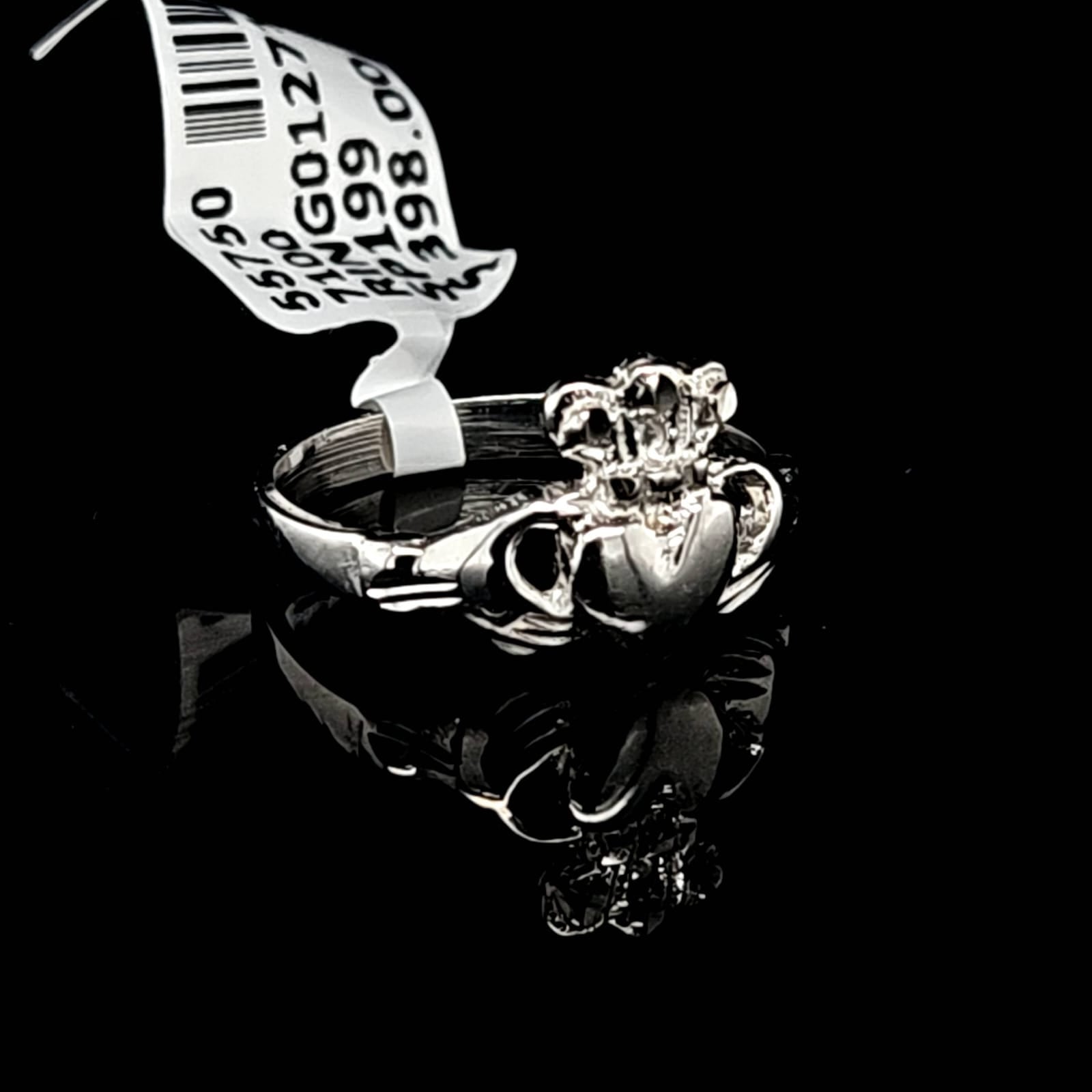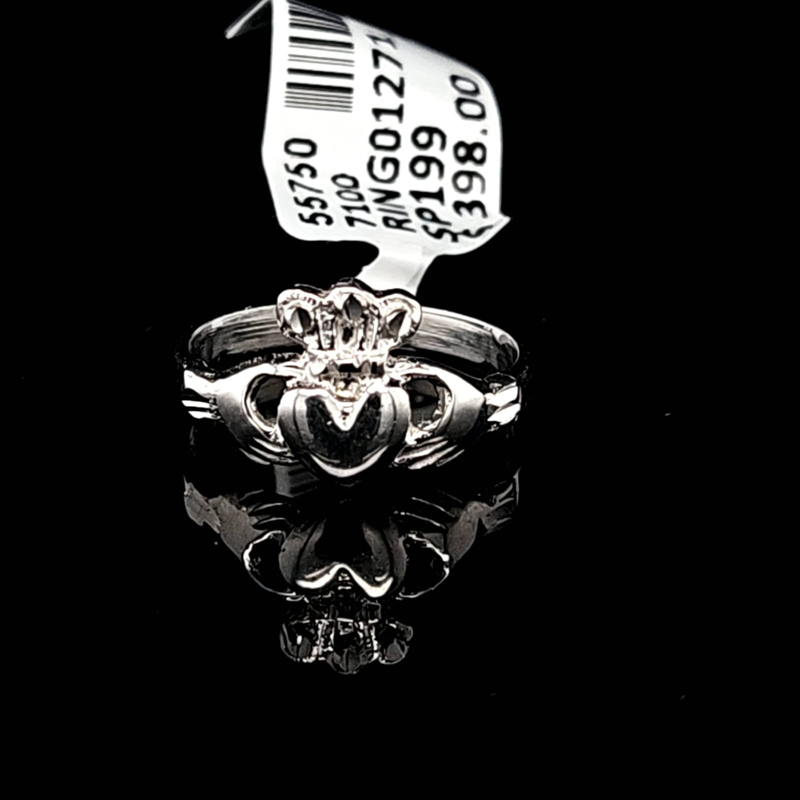This elegant HEART CROWN ring features a stunning design of 10K white gold, complete with a delicate crown over a heart. Crafted with precision and available at a great value, this ring is the perfect addition to any jewelry collection. Make a statement with this beautiful and affordable piece.