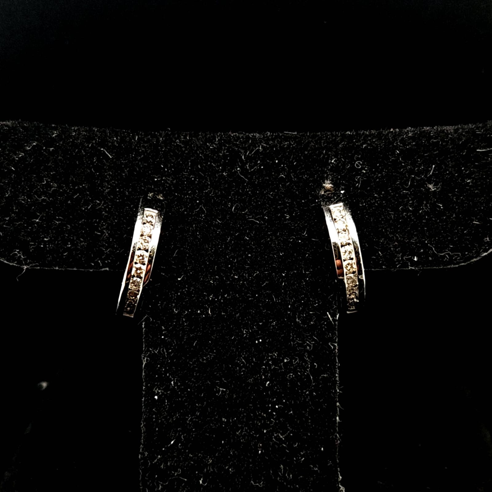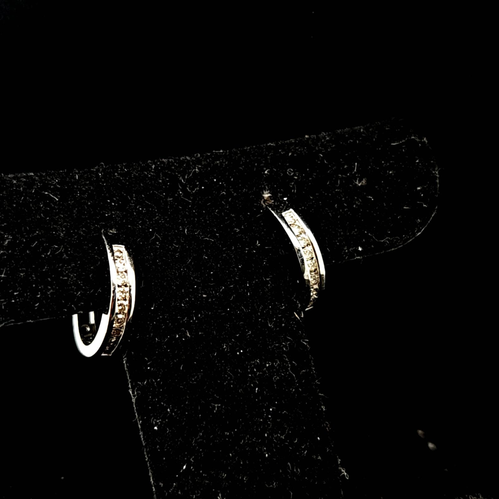 Indulge yourself or a loved one with these stunning HUGGIES earrings. Crafted with 10K white gold and adorned with .25ct of natural diamonds in a classic Chanel setting, these earrings offer both elegance and value. Add a touch of luxury to any outfit at a great price.