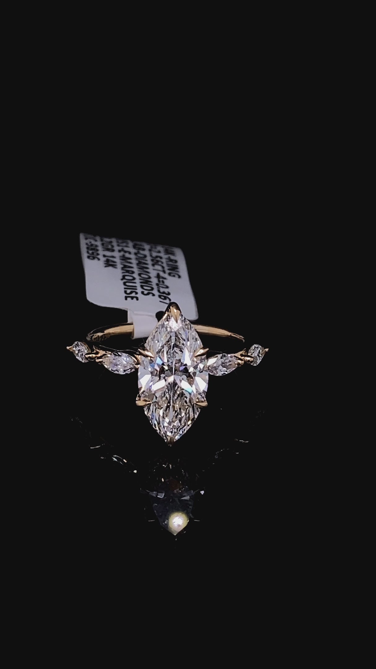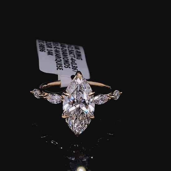 Elevate your engagement with this sophisticated marquise ring, crafted in 14K gold for enduring elegance. The stunning 2.56-carat lab-grown marquise diamond commands attention with its distinctive elongated brilliance, while 0.36 carats of complementary stones adorning the band add refined sparkle. Lab-grown diamonds offer exceptional quality and ethical sourcing without compromise on beauty or durability. A timeless choice for those seeking luxury with purpose.