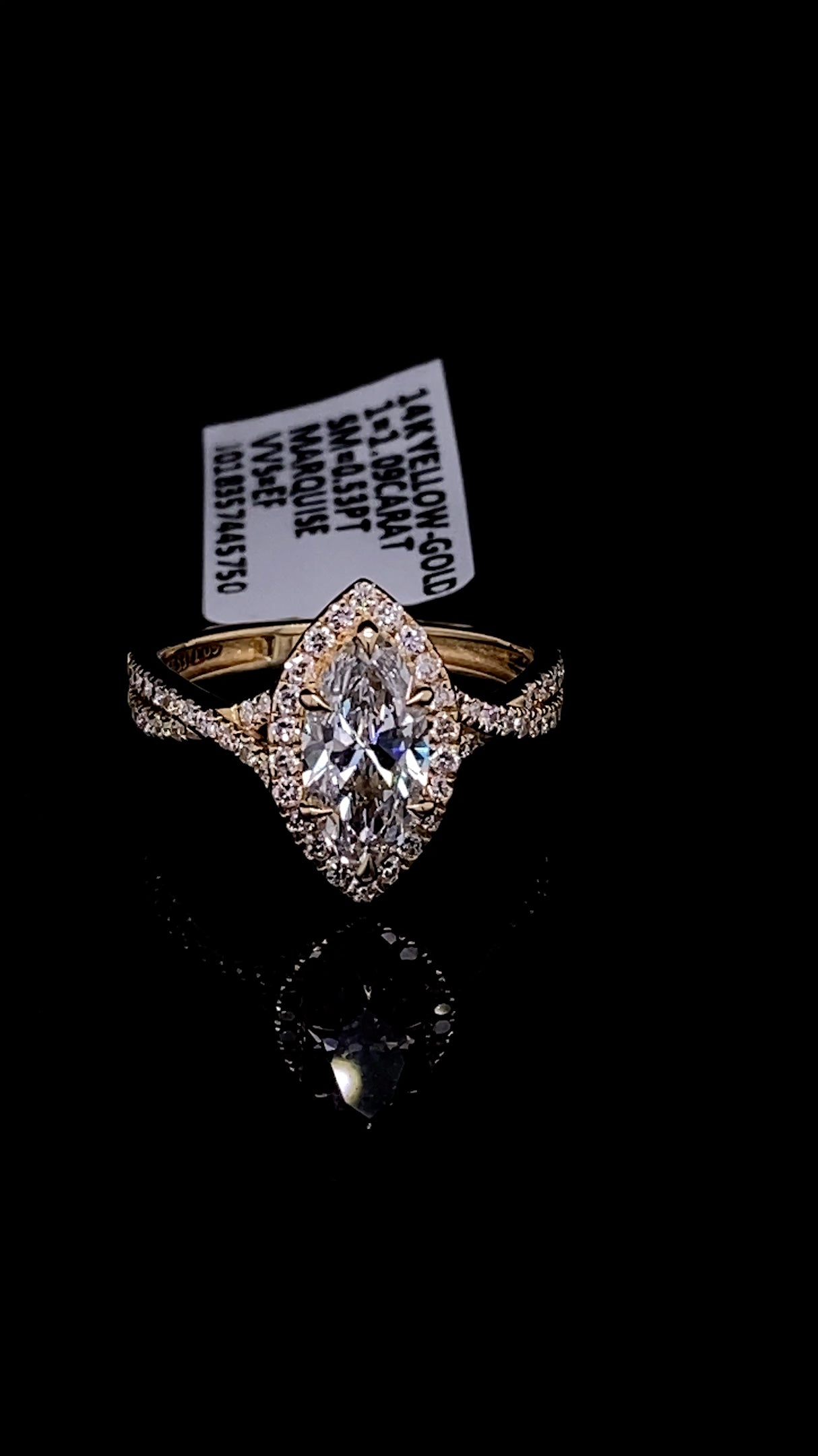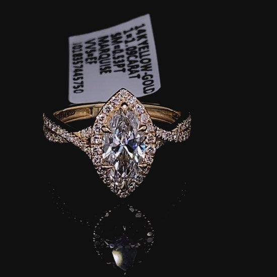 Elevate your elegance with this sophisticated 14K gold ring featuring a stunning 1.09 carat lab-created marquise diamond at its center, complemented by 0.53 carats of sparkling diamonds adorning the band. The marquise cut's distinctive elongated shape creates a striking silhouette that catches light beautifully, while the infinity-inspired band design symbolizes timeless love and commitment. Lab diamonds offer exceptional quality and brilliance at remarkable value, making this piece both a smart investment and a breathtaking statement. Perfect for engagements, anniversaries, or as a luxurious everyday treasure.