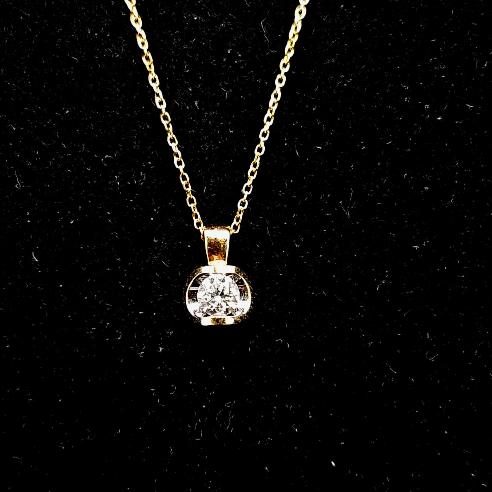 Elevate your look with the MOON SET - a stunning .50ct natural diamond necklace made of 14K gold. Experience the perfect combination of beauty and value with this expertly crafted jewelry piece. Upgrade your collection now.