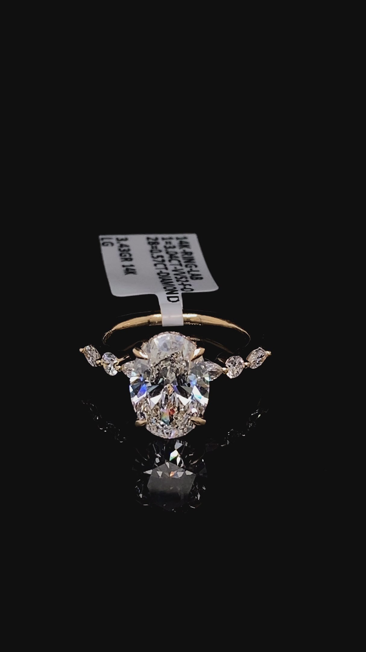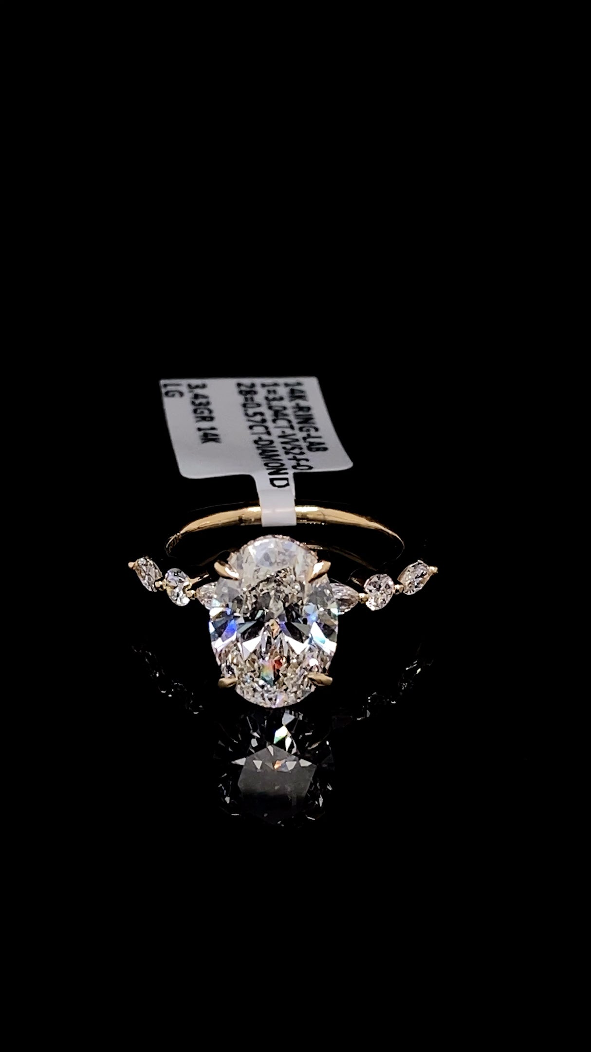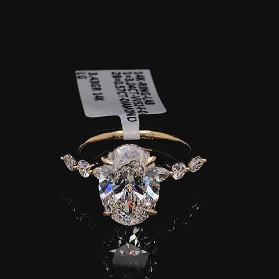 This stunning oval engagement ring showcases a masterfully crafted 14K gold setting that elegantly frames a 3.04 carat lab diamond center stone, complemented by 5.57 carats of sparkling diamonds adorning the sides. The sophisticated design balances timeless elegance with contemporary appeal, offering exceptional brilliance and fire. Lab diamonds provide outstanding value without compromising on quality or visual impact, making this piece an intelligent choice for the discerning buyer. Perfect for those seeking a distinctive engagement ring that combines luxury craftsmanship with responsible sourcing.