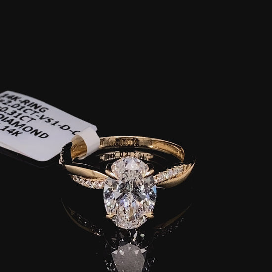 Elevate your engagement with this stunning oval-cut ring, meticulously crafted in 14K gold. The centerpiece features a brilliant 2.01ct lab diamond, complemented by 0.31ct of accent stones adorning the infinity band. This design seamlessly blends timeless elegance with modern sophistication, offering exceptional sparkle and durability. The infinity motif symbolizes eternal love, making it a meaningful choice for your most precious moment. Lab diamonds provide outstanding value without compromising on quality or beauty.