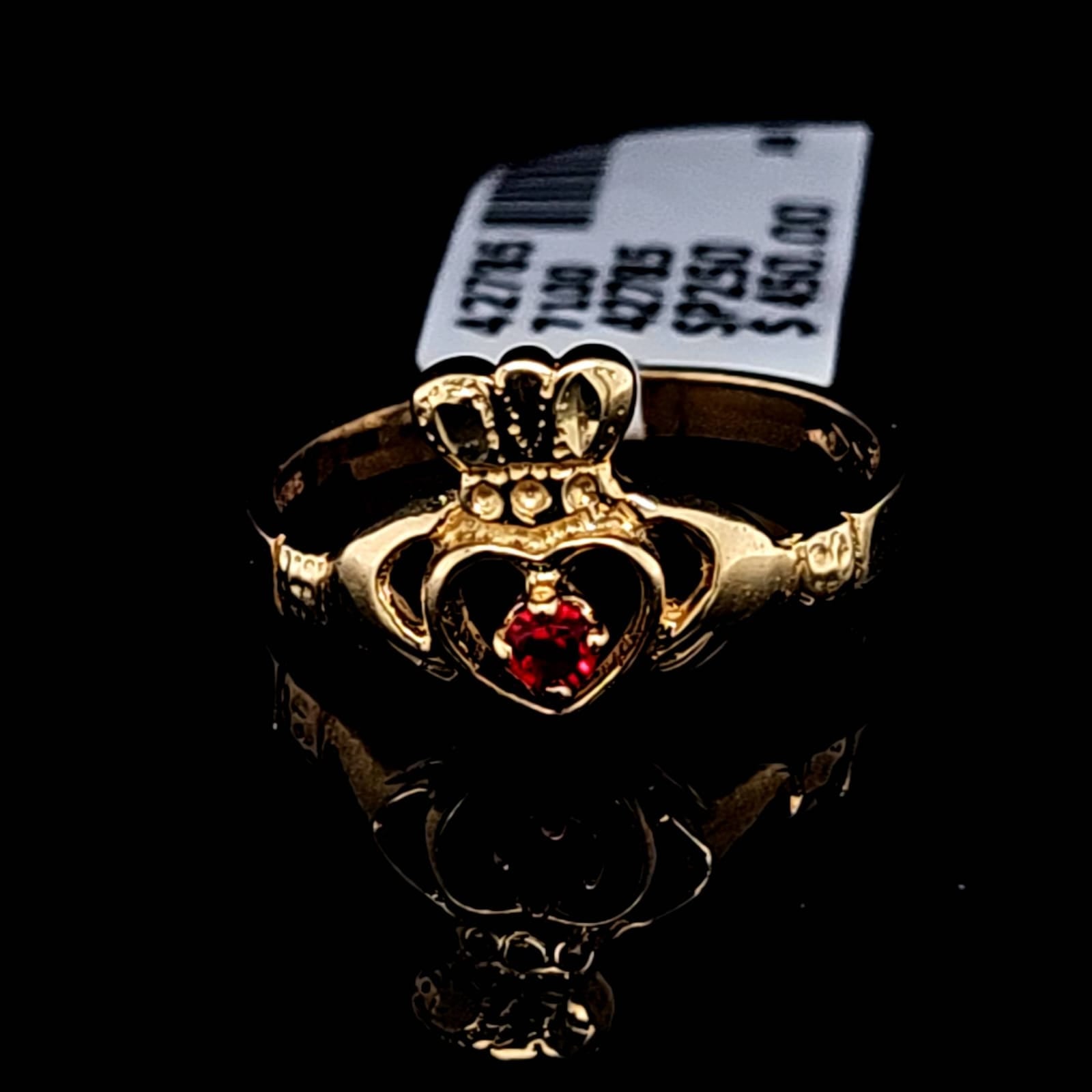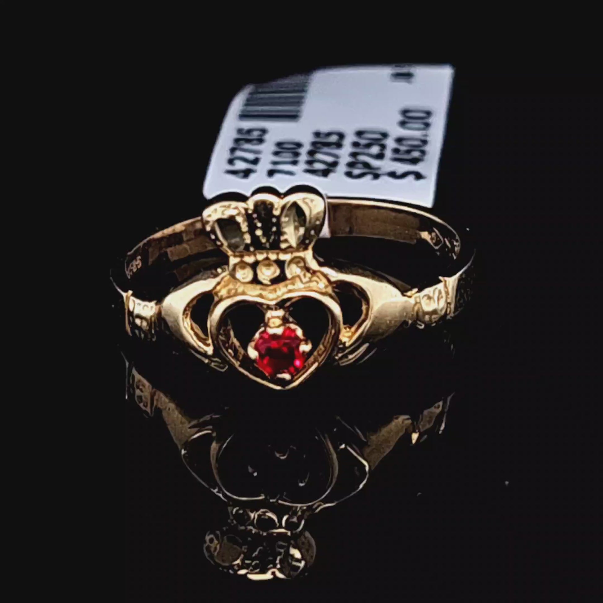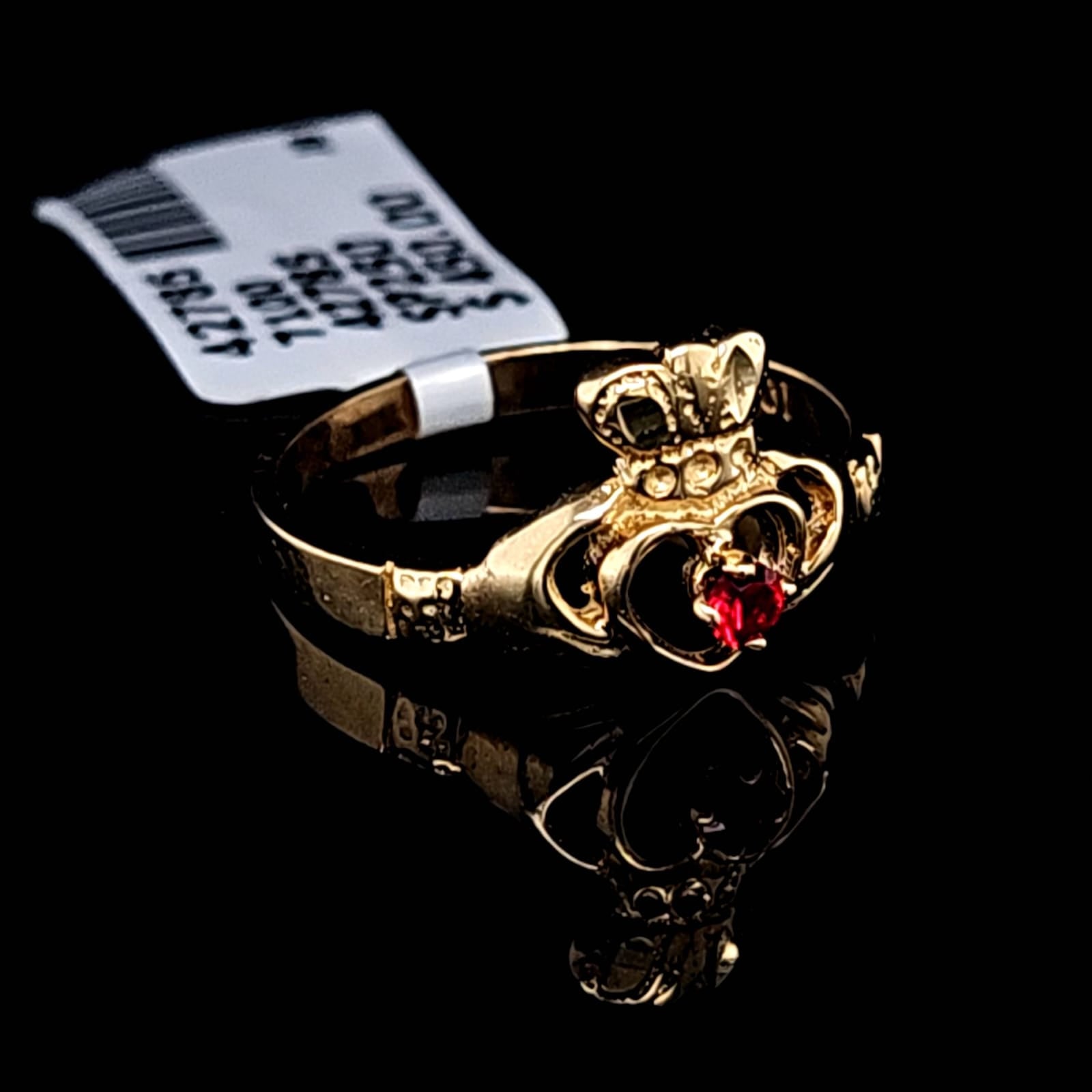 This elegant ring features a stunning red stone at its center, surrounded by a beautiful heart design. Made with high-quality 10K gold, this ring offers both luxury and affordability. A perfect gift for yourself or a loved one.