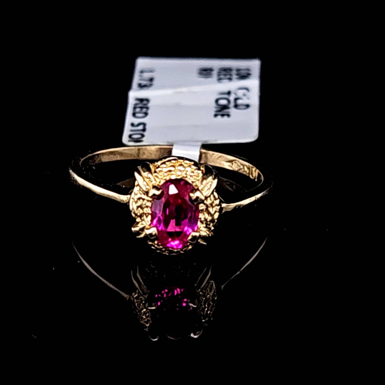 Indulge in luxury with this stunning Ruby Ring. Crafted with 10k gold, its timeless elegance radiates with every wear. A must-have addition to any jewelry collection at an unbeatable price. Transform any outfit into a showstopper with this beautiful Ruby Ring.
