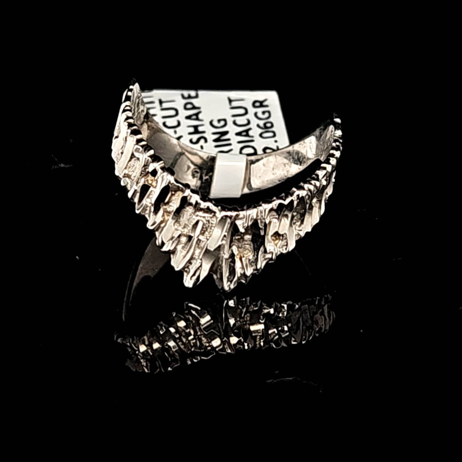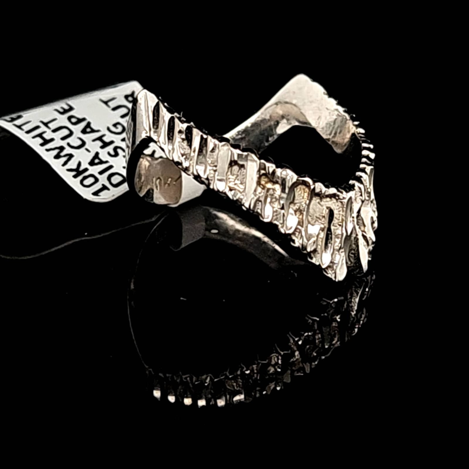 Achieve a stunning look with our V Shaped Ring, crafted with 10K white gold and featuring a diamond cut design. Emphasize your unique style with this elegant and timeless piece.